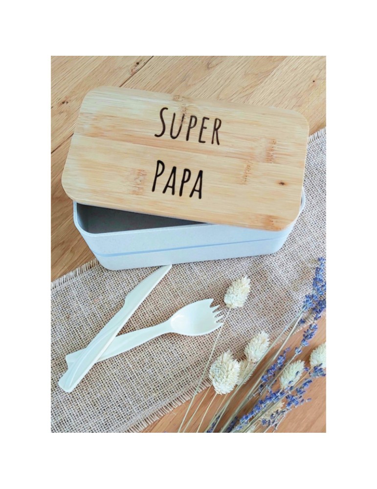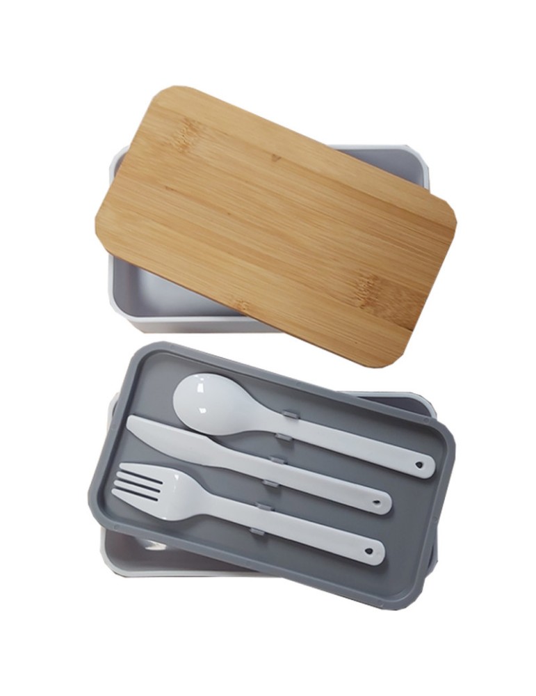 LUNCH BOX / BOITE A LUNCH Adaptée au micro-ondes, au lave-vaisselle et au congélateur. 2 récipients avec couvercles cuillère fourchette et couteau, 1 caissette, 1 élastique fabriqué a partir de fibre de blé et couvercle bambou. Emportez vos déjeuners partout et en toute sécurité !
