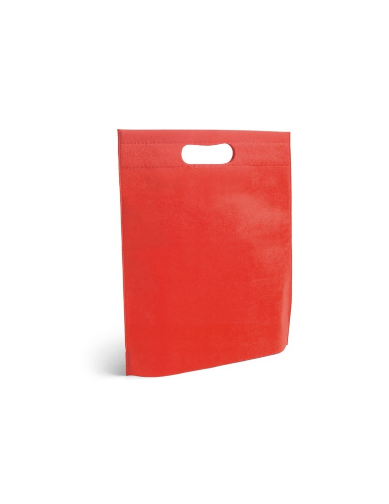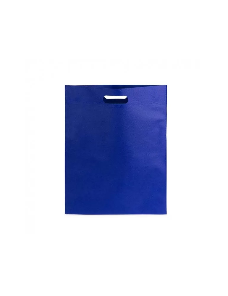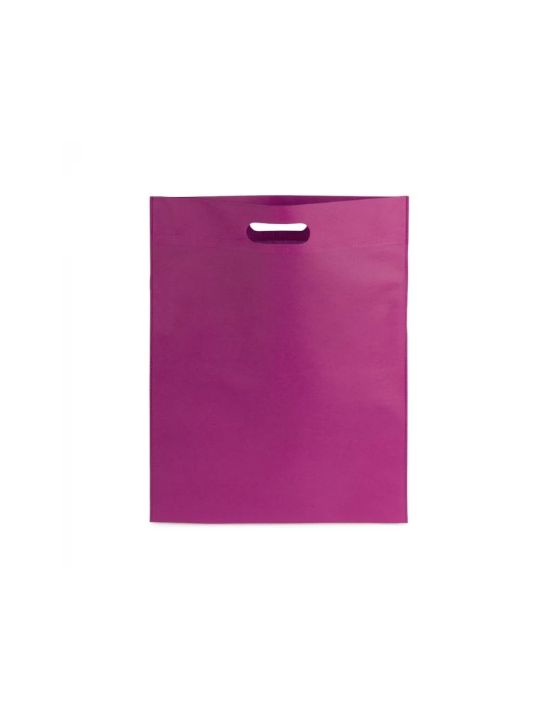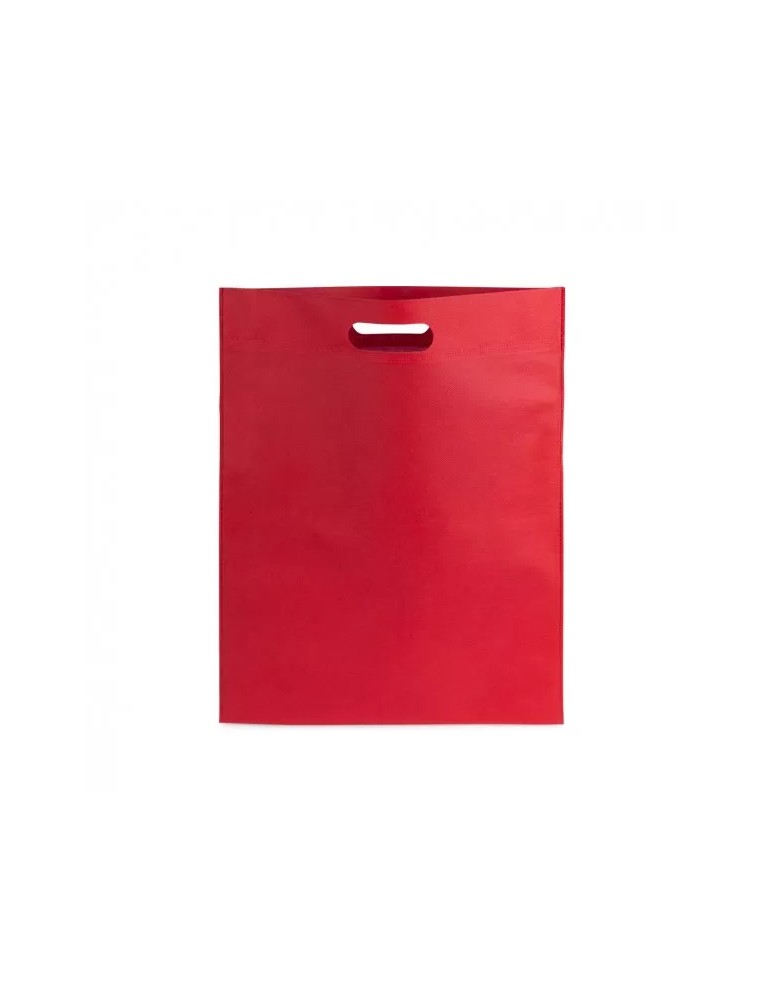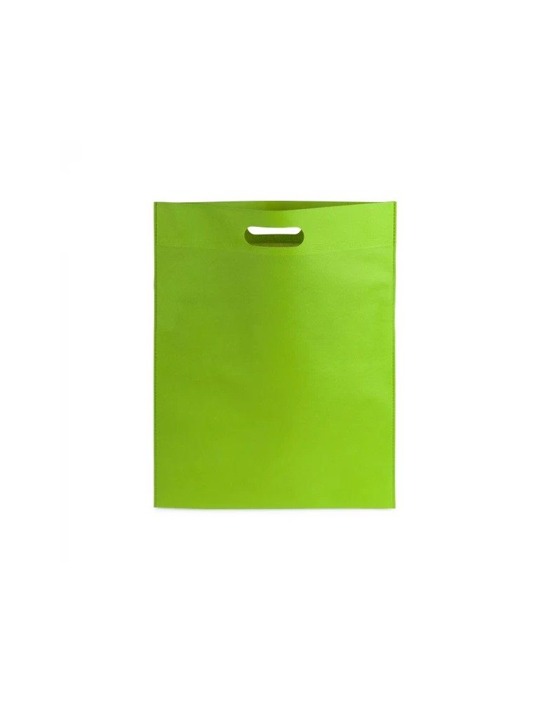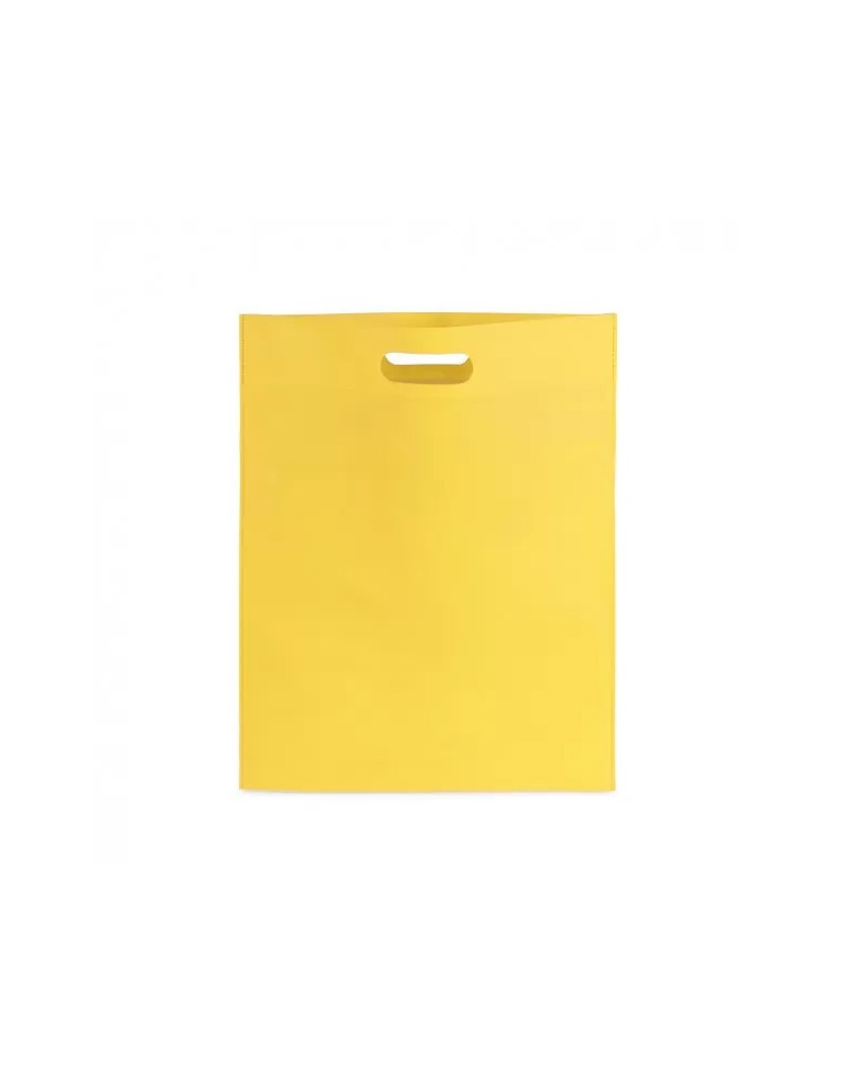 Sac TNT 80 g/m2, avec poignées renforcées découpées, soufflets et finition thermosoudée. Résistance à un poids de 5 kg. Dimensions : 34x43 cm