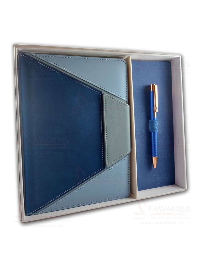 Découvrez notre élégante combinaison de bloc-notes A5 et stylo en métal, présentée dans un coffret raffiné. Idéale pour un usage personnel ou comme cadeau, cette offre combine praticité et style. Le bloc-notes A5 est conçu pour une utilisation confortable, tandis que le stylo en métal offre une écriture fluide et élégante. Disponible en deux coloris : Bleu et Beige Camel, ce coffret répond à tous vos besoins de papeterie avec une touche de sophistication.
