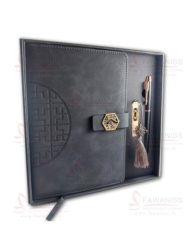 Offrez un coffret élégant et pratique avec ce set 3 pièces personnalisé : un bloc-notes A5 en similicuir, une clé USB 16 Go en métal et un stylo en métal, le tout dans un coffret raffiné. Idéal pour un cadeau professionnel, un cadeau d'entreprise ou un usage personnel, ce coffret allie utilité et esthétique. Personnalisez-le selon vos envies et faites de chaque élément un objet unique. Disponible en Bleu, marron ou Noir pour le bloc-notes et le stylo. Un cadeau parfait pour marquer les esprits.