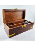 Coffret en bois de cèdre et laiton 3 pièces : boussole, loupe et jumelles/télescope antique en laiton.
