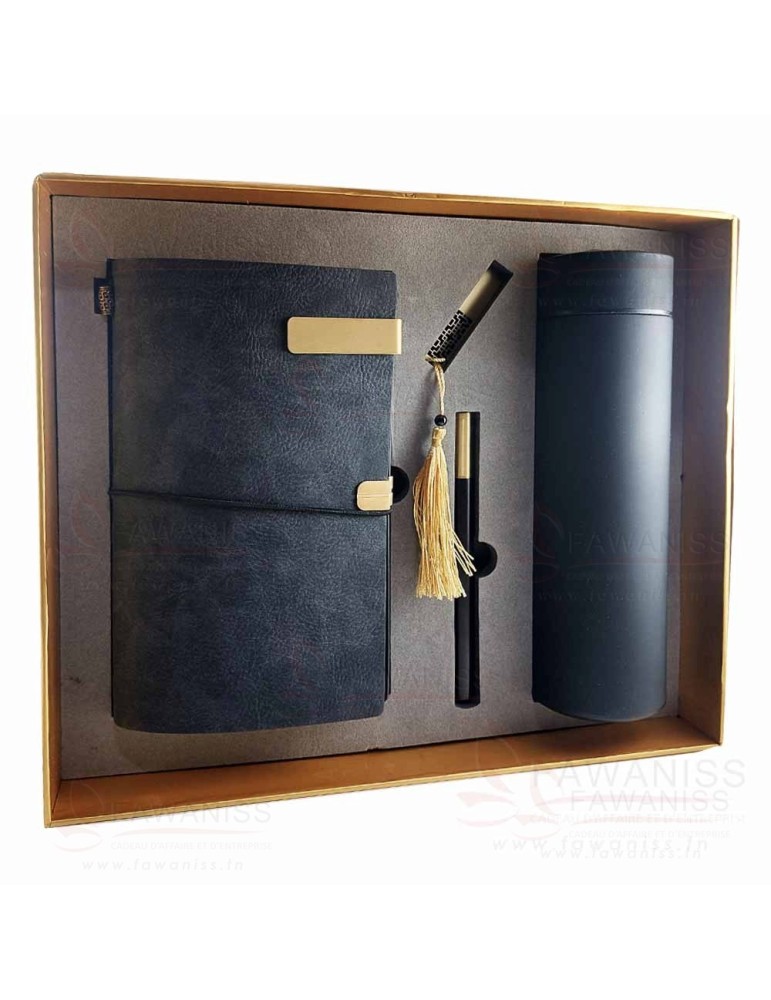 Coffret Cadeau Premium 4 pièces : Bloc Notes A5, Stylos Métal, Clé USB et Thermos LED. Parfait pour les professionnels, étudiants et créatifs. Idée cadeau originale et utile pour toutes les occasions. Personnalisation au Laser avec Votre Logo ou Nominatif ! Livraison offerte*.