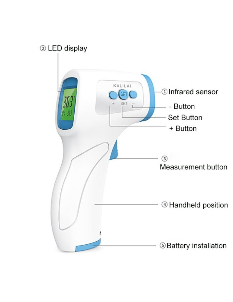 Thermomètre Électronique Digital Infrarouge FE 211 personnalisable. 3 couleurs rétro-éclairage et une grande aide d'affichage numérique de la temperature sans se soucier dans l'obscurité. Le thermomètre a une fonction d'arrêt automatique.