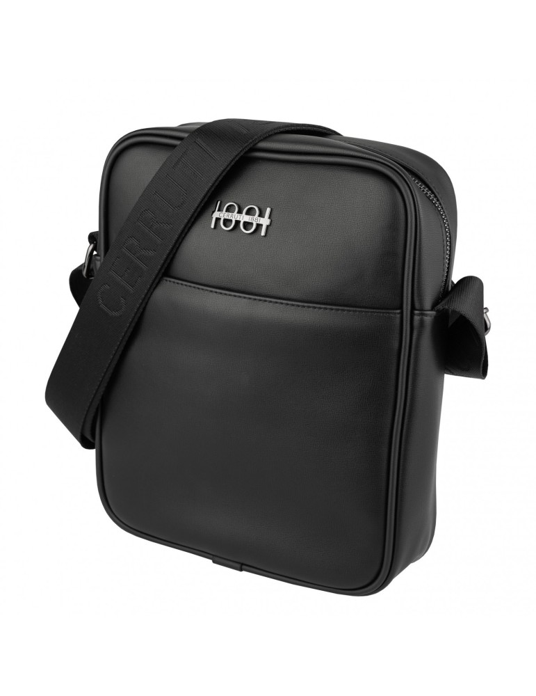 Le sac reporter Cerruti 1881® de la collection 'Hamilton', au design minimaliste et à l'allure contemporaine, est fait d'un matériau lisse et léger avec une signature en métal brillant.