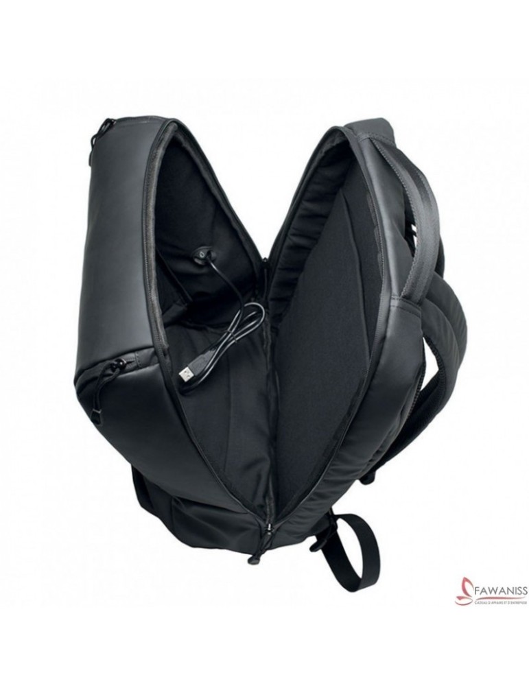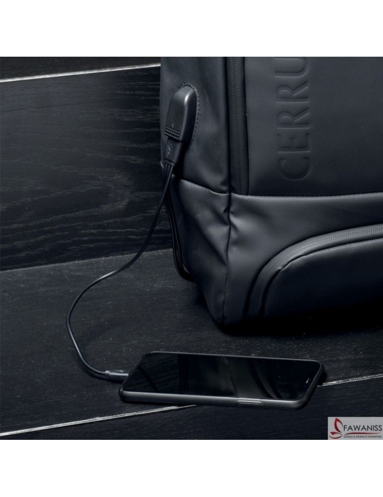 Cadeau Tunisie Minimaliste et très fonctionnel, ce sac a dos est le parfait compagnon de voyage pratique et élégant. Prise USB pour brancher sa batterie de secours à l'intérieur du sac à l'aide du câble de chargement inclus, et recharger son smartphone. 3 compartiments. Un compartiment profond avec sangles de rangement et 2 petites poches intérieures, un emplacement pour ordinateur portable jusqu'à 15 pouces (ouverture pratique sur le côté), une poche extérieure zippée. Livré dans son sac nylon Cerruti 1881®.
