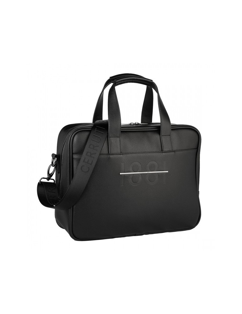 Le porte-documents Cerruti 1881® de la collection 'Horton', au design minimaliste et à l'allure contemporaine, est fait d'un matériau noir lisse et léger avec une signature en métal chromé brillant. Son large compartiment est composé d'un côté d'un emplacement rembourré pour ordinateur portable jusqu'à 15 pouces, d'une partie pour ranger des documents et d'une petite poche zippée.