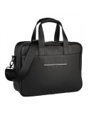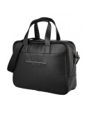 Cadeau homme Tunisie. Le porte-documents Cerruti 1881® de la collection 'Horton', au design minimaliste et à l'allure contemporaine, est fait d'un matériau noir lisse et léger avec une signature en métal chromé brillant. Son large compartiment est composé d'un côté d'un emplacement rembourré pour ordinateur portable jusqu'à 15 pouces, d'une partie pour ranger des documents et d'une petite poche zippée. Une grande poche extérieure à large ouverture zippée fait l'atout de cette sacoche. Doublure intérieure en coton. Une bandoulière réglable et amovible mettant en avant la marque est incluse. Livré dans son élégant sac coton sable Cerruti 1881.