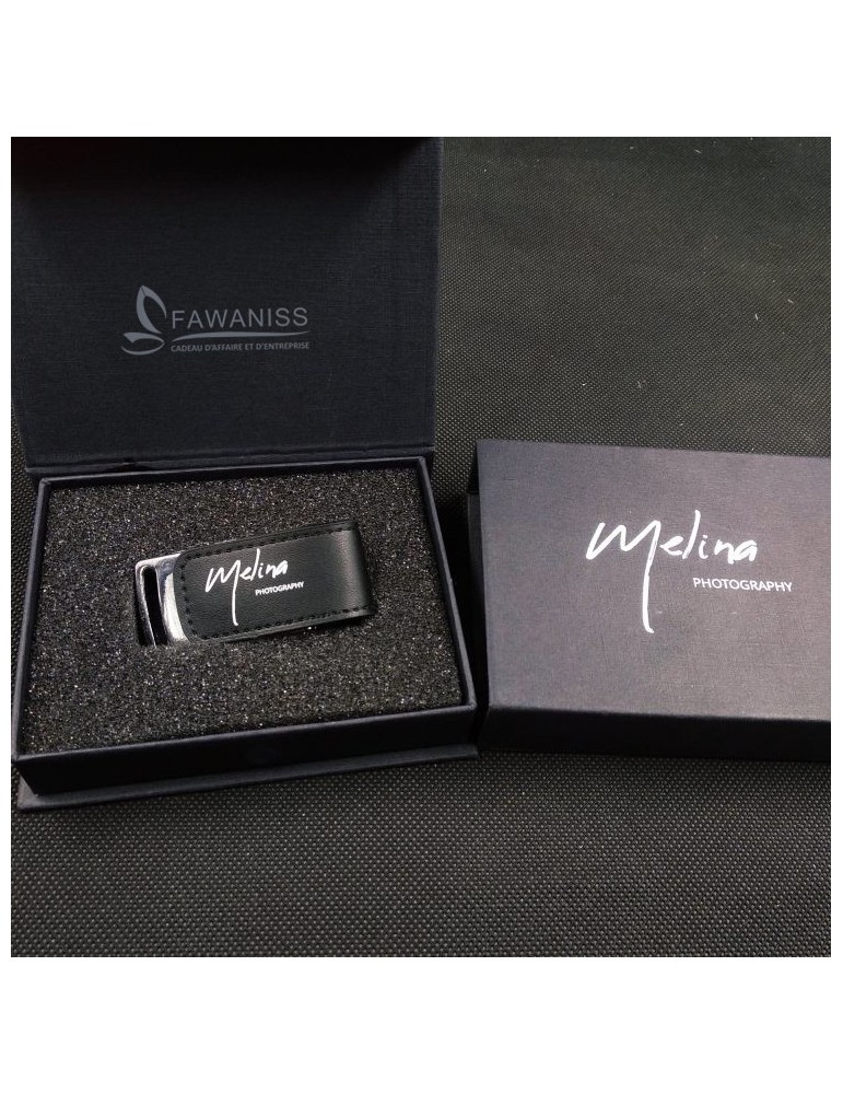 Clé USB publicitaire en métal et cuir : un élégant cadeau d'entreprise, qui saura valoriser votre image d'entreprise. A personnaliser par embossage sur le cuir (votre logo sera du plus bel effet) ou avec une gravure laser.