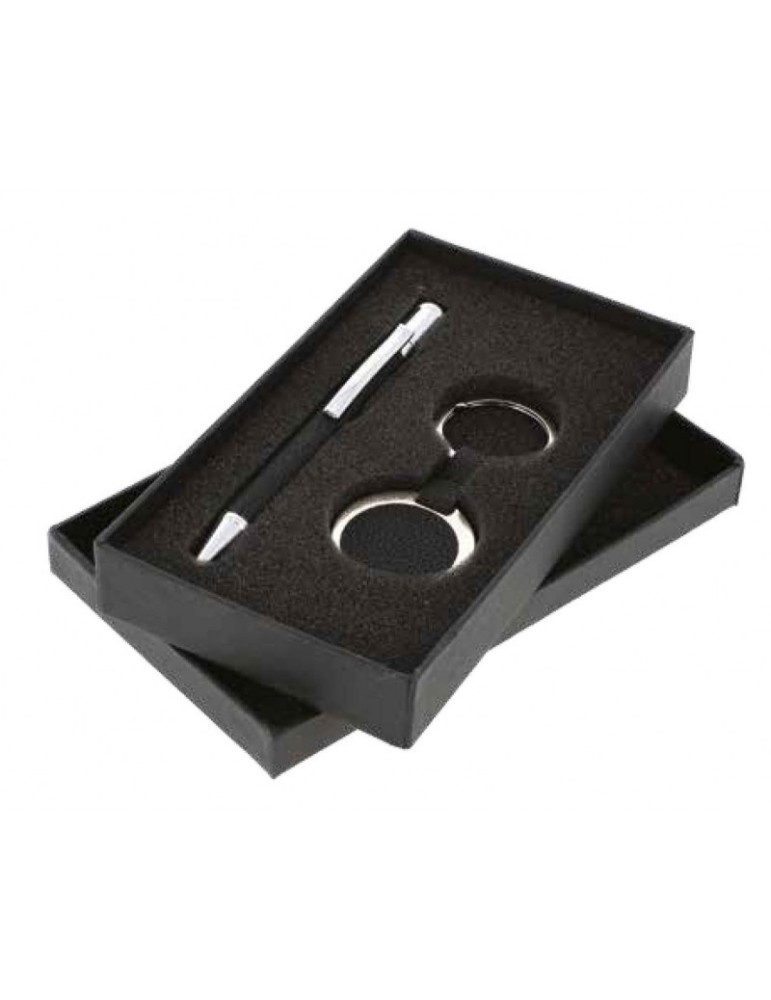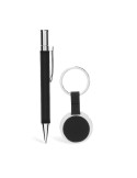 Coffret Cadeau Tunisie Coffret Set 2 pièces qui se compose d’un Stylo et d’un Porte-clés le tout revêtu de similicuir Noir Idéal pour une personnalisation au Laser – Gravure de votre Logo.