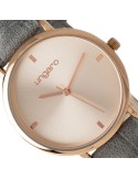 La montre Ungaro "Giada" grise est discrète et féminine. Son bracelet est fait de cuirs soigneusement choisis, gaufrés d'un imprimé croco, ce qui lui donne une allure à la mode et luxueuse. Le boîtier est délicat et mince (8 mm), plaqué or rose. Le design du cadran est minimaliste et se termine par un effet soleil. Disponible également en bleu marine. Poids : 31 g - Dimensions : diamètre 35 mm - Bracelet : 235 mm - Mécanisme Myota - Resistance à l'eau : 3 ATM. Livré dans son élégant coffret noir Ungaro.